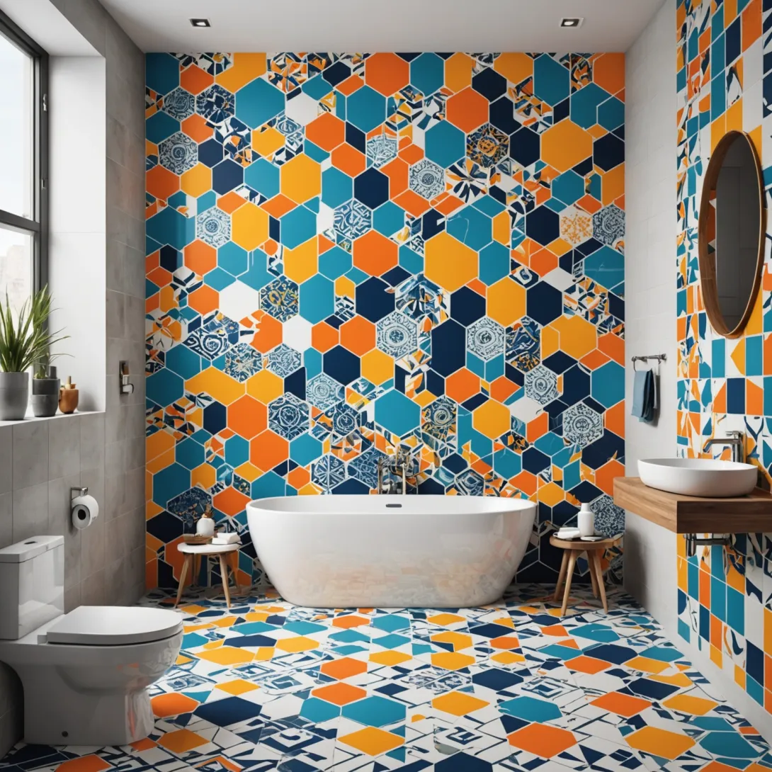 Современные тенденции в декоре ванной с использованием наклеек включают: